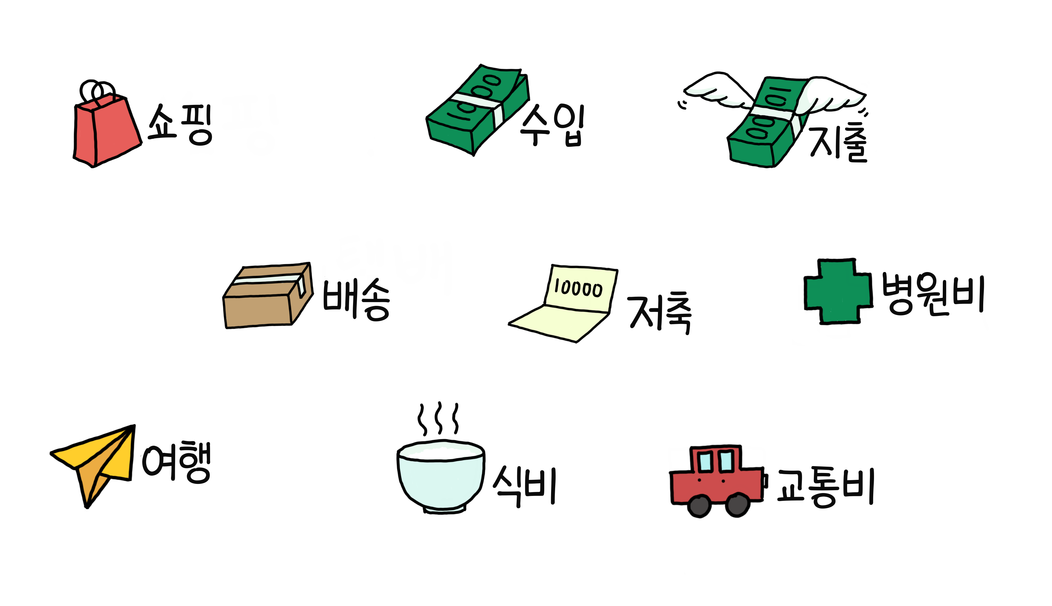 가계부를 쓸때 가장 많이 사용하는 항목들로 만들어봤어요. 쇼핑/배송/수입/지출/저축/병원비/교통비/식비/여행이 가계부를 사용할 때 가장 많이 사용하게 되는 것들이더라구요. 수입스티커를 붙일때가 가장 좋던데 ㅎㅎ 항상 수입만 있었으면 좋겠네요. 스티커는 PNG파일로 공유합니다. 아이패드나 갤럭시탭에 다운받아서 알맞게 잘라 사용하시면 될것같습니다! 아래 PNG파일을 다운받아 사용해주세요:)