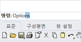 먼저 상단에 옵션을 클릭하거나 명령어 창에 options를 입력해 옵션창을 열어줍니다.