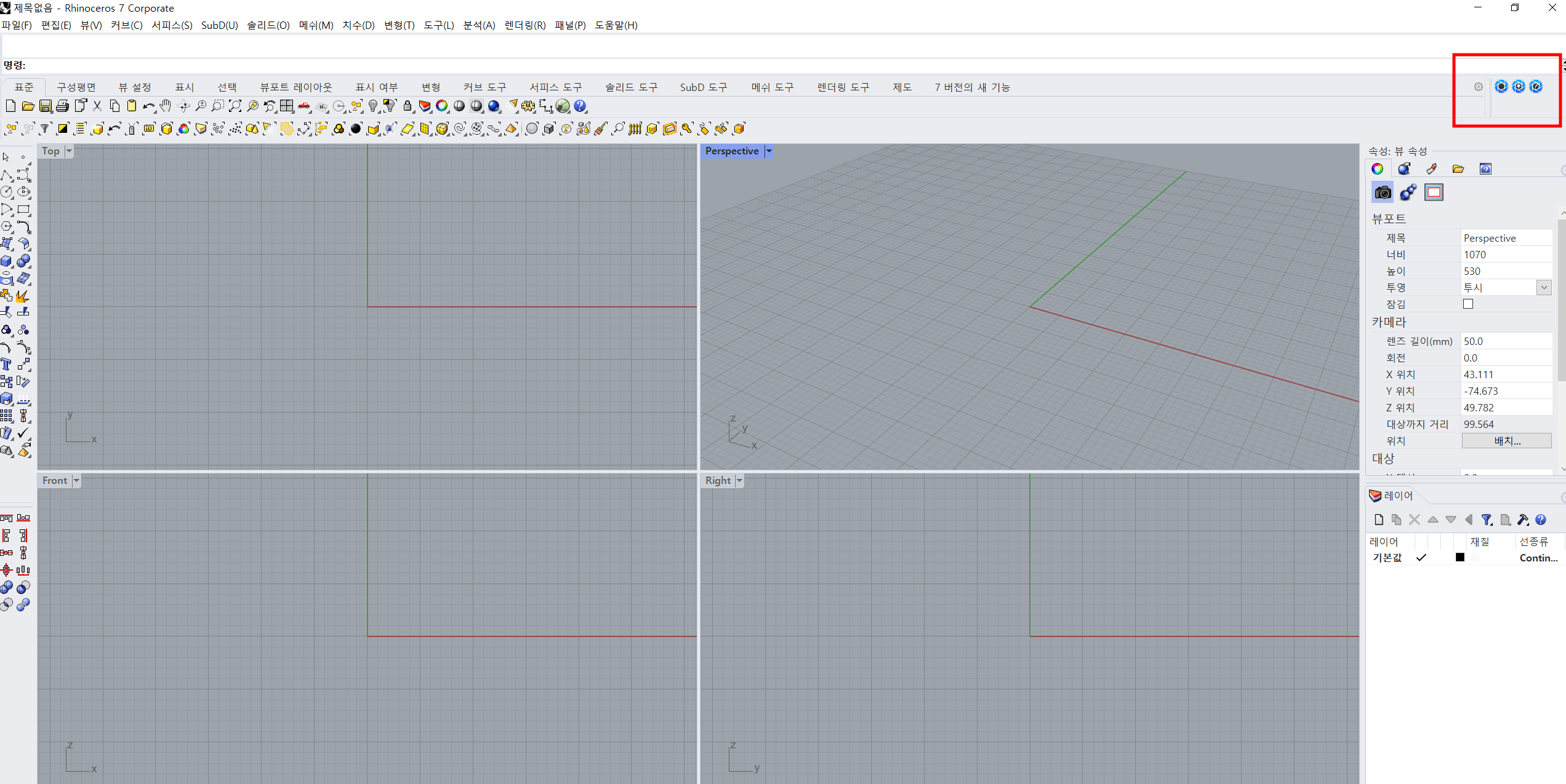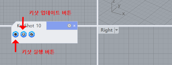이 키샷 플러그인은 라이노 우측상단에 배치해 놓는 것이 가장 편리합니다.