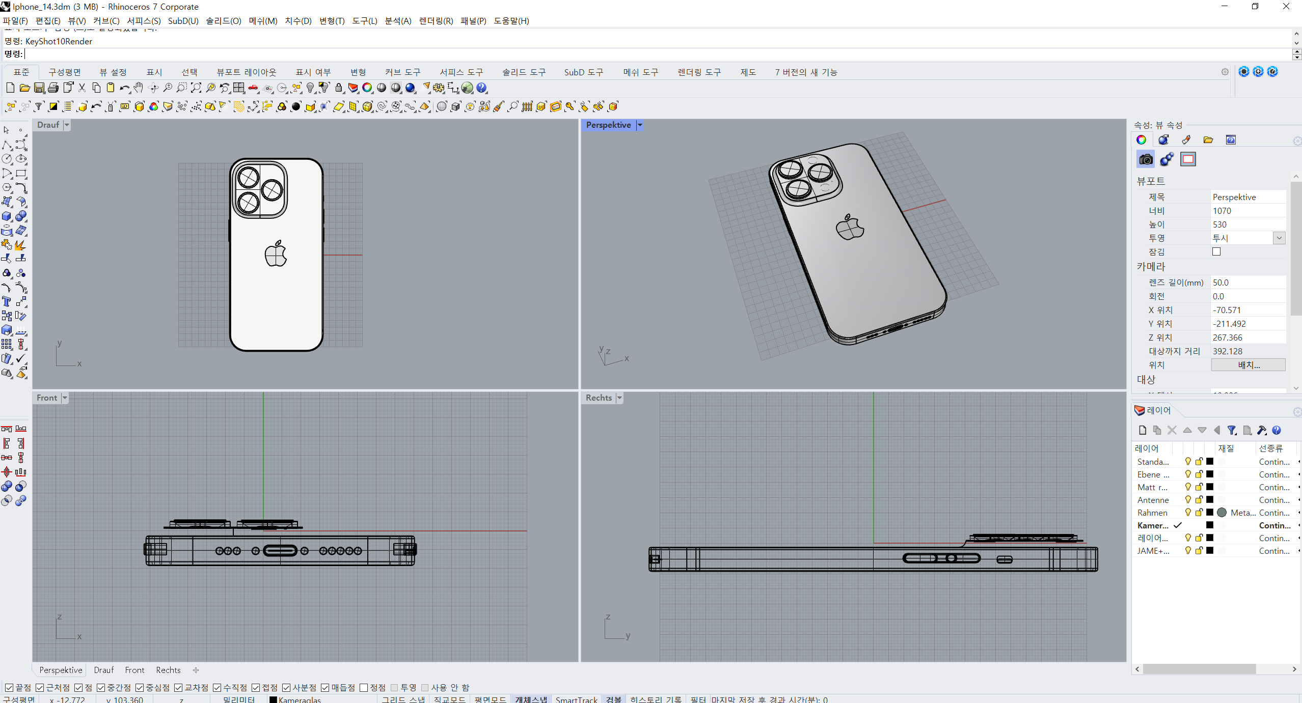 예를 들어 아래 아이폰 파일을 작업한 그대로 상단에 있는 키샷 버튼을 누르면,