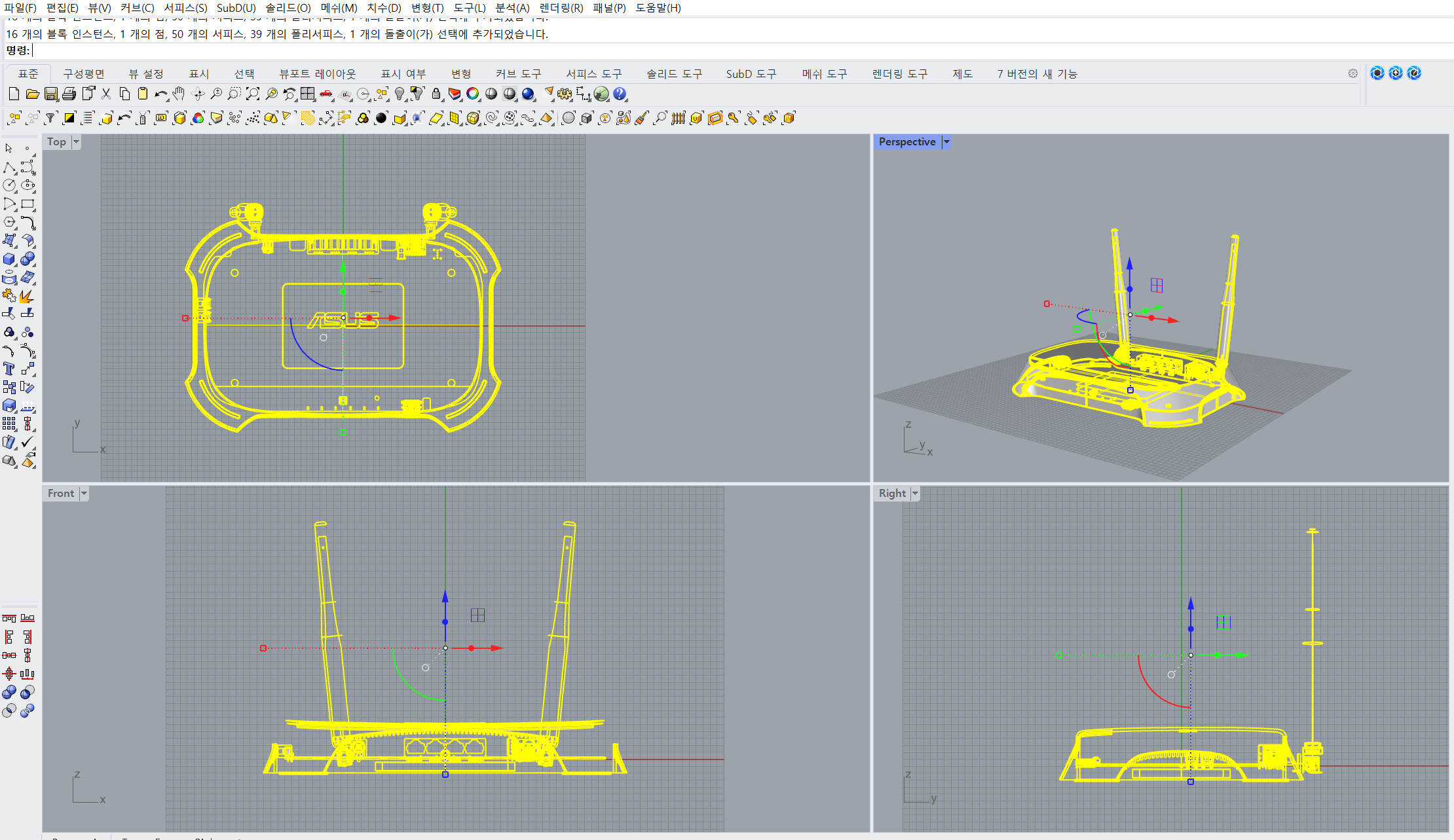 오늘은 라이노 도면추출 방법에 대해 알아보겠습니다. 모델링을 끝내면 패키지나 다른 작업을 위해 도면이 필요할 때가 많습니다. 그럴 때 6면 뷰와 퍼스팩티브뷰까지 추출할 수 있는 도면추출 명령어가 있습니다. 이렇게 추출된 라인을 AI나 DWG파일로 저장해 일러스트작업이나 도면작업을 쉽게 할 수 있습니다. 이런 도면 추출 방법을 차근차근 알아보도록 하겠습니다.