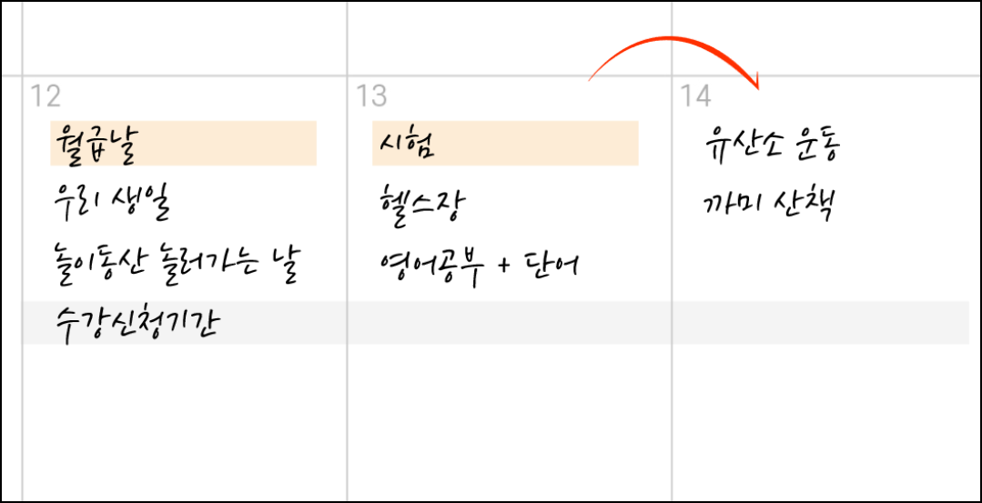 디테일 사용 예시 이미지입니다. 넓고 큰 달력을 스케줄러처럼 사용하세요! 무채색을 활용해서 최대한 깔끔하게 디자인했기 때문에 사용하실 때도 정돈되게 사용하실 수 있을 것 같습니다.